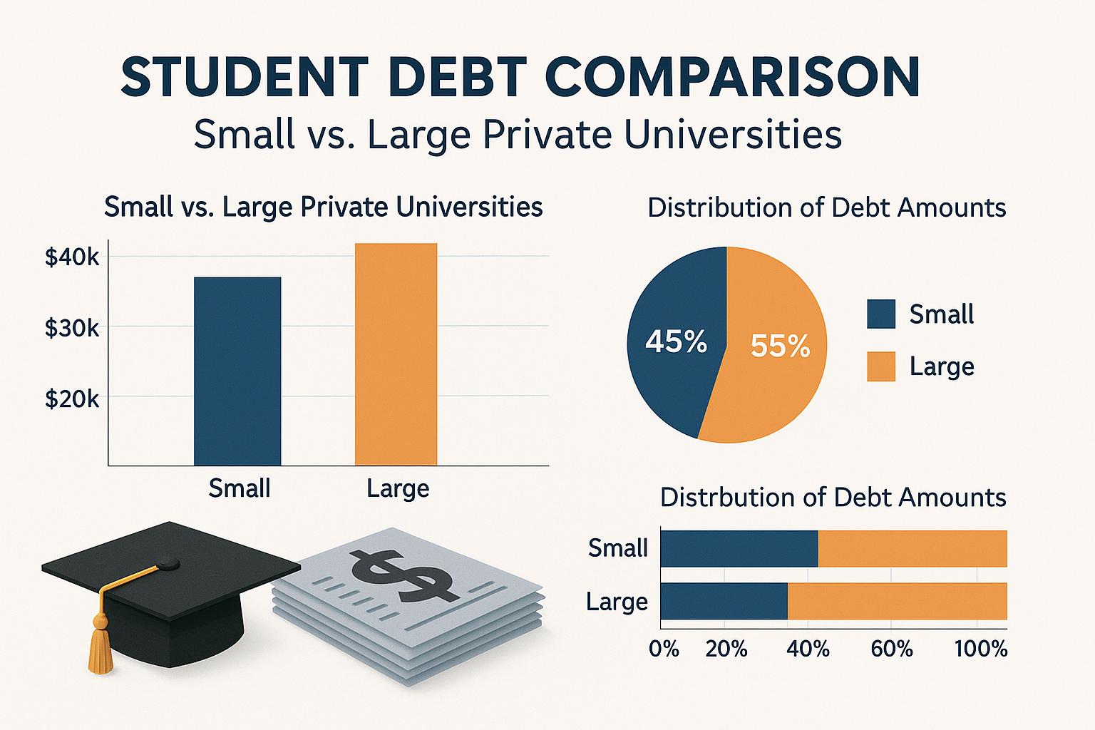 Conducted in-depth statistical analysis comparing average debt of graduates from small private universities with large private universities using R/RStudio, revealing significant patterns in student loan burdens.